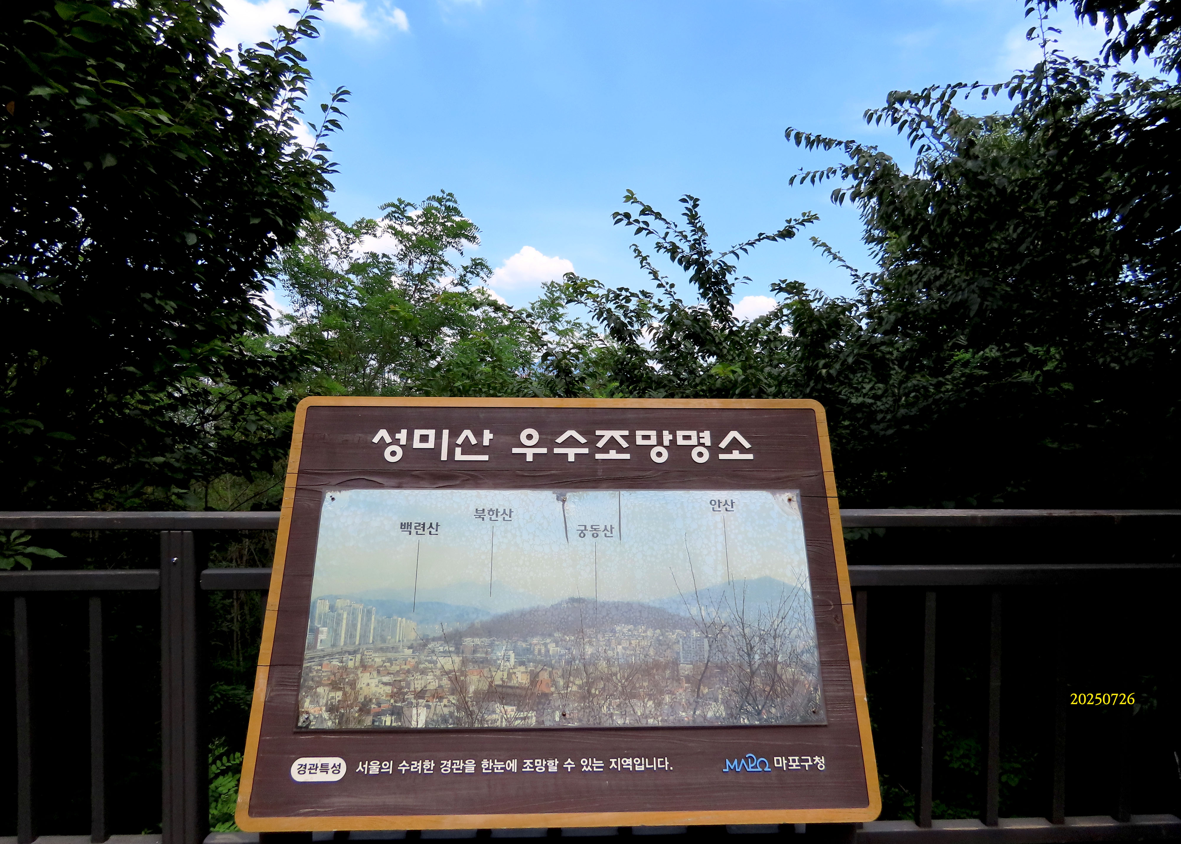 마포구 성산근린공원(城山近隣公園) 성미산( 2025년 7월 26일 )토요일,맑고 무더운 폭염경보 기온은 28~38도