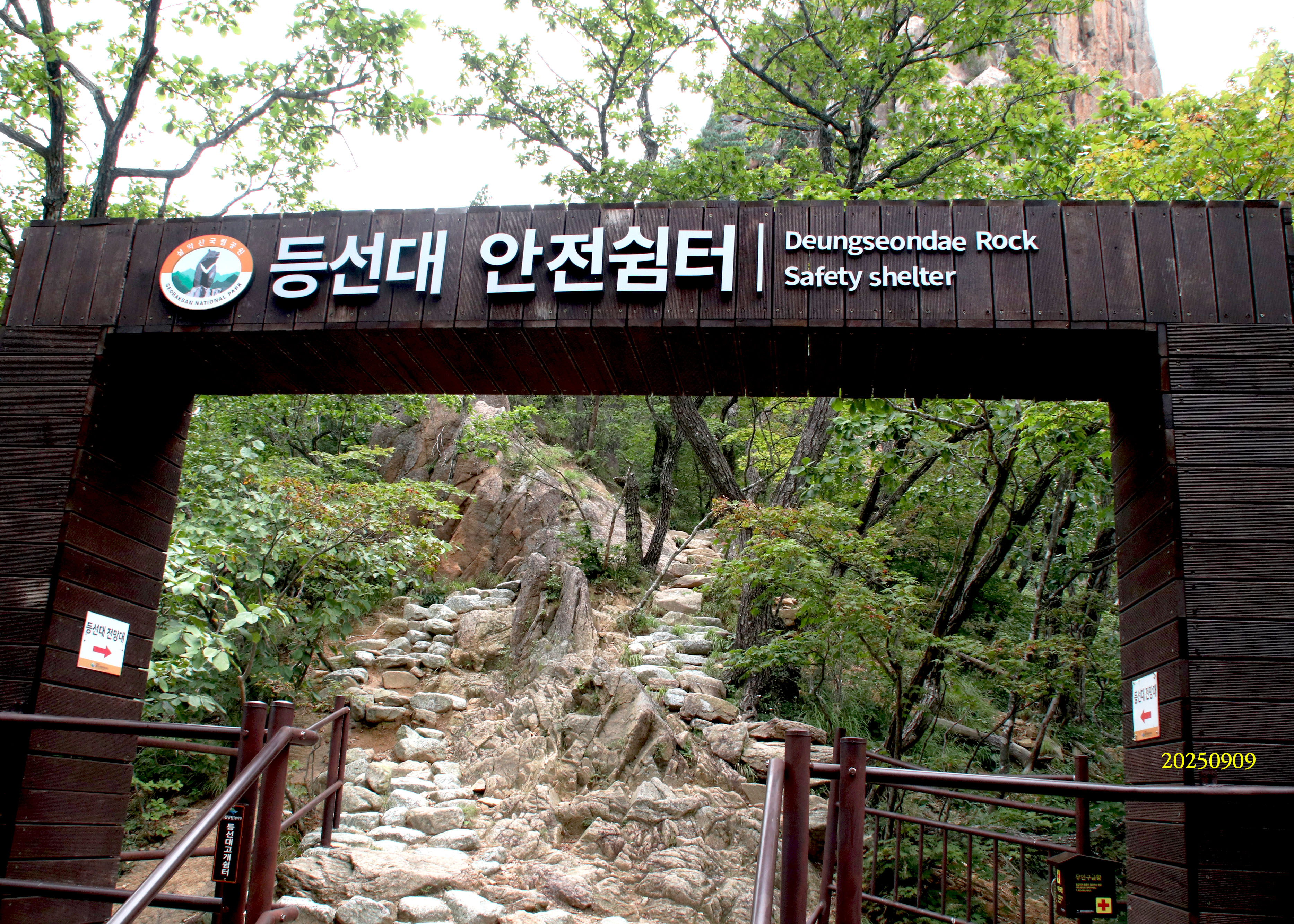 설악산국립공원 오색흘림골~주전골---(1)( 2025년 9월 9일 )화요일,하루종일 흐리고 구름이 많으나 비는 오지도 않았습니다 .기온은 22~31도 강변역 동서울터미널에서 속초행 06시30분 발 시외버스를 타고 오색흘림골에서 내립니다.요금19,000원(2025년 기준) 미리 사전에 탐방로 예약을 해놔서 확인하고 통과하여 산행을 시작합니다.
